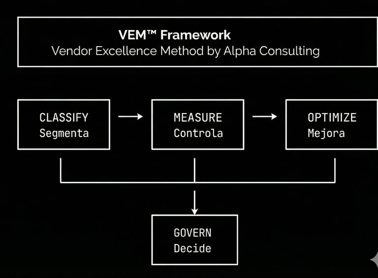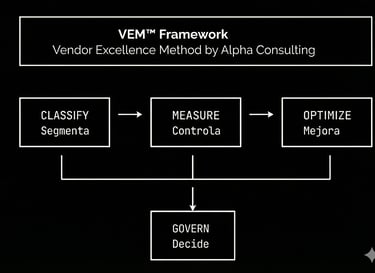 Ayudamos a CIOs y directores IT a recuperar el control sobre el 60-70% de su presupuesto que va a proveedores externos. A través de nuestro método VEM™ (Vendor Excellence Method), establecemos gobernanza clara, medimos resultados objetivamente y optimizamos costes, generando ahorros del 10-20% del gasto en vendors mientras mejoramos la calidad de servicio. Disponible como servicio gestionado continuo o como proyecto cerrado de implementación.