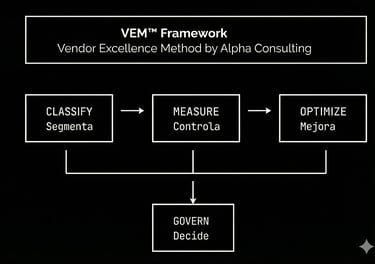 Ayudamos a CIOs y directores IT a recuperar el control sobre el 60-70% de su presupuesto que va a proveedores externos. A través de nuestro método VEM™ (Vendor Excellence Method), establecemos gobernanza clara, medimos resultados objetivamente y optimizamos costes, generando ahorros del 10-20% del gasto en vendors mientras mejoramos la calidad de servicio. Disponible como servicio gestionado continuo o como proyecto cerrado de implementación.